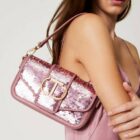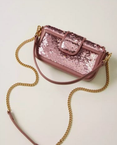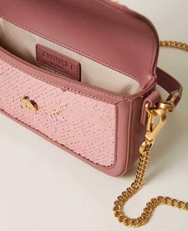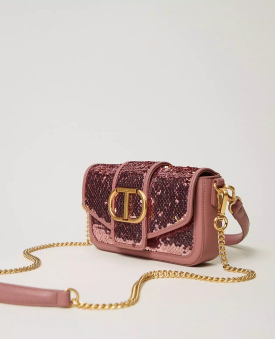 Sac à bandoulière « Amie » top handle en tissu de sequins, avec détails effet cuir de veau lisse assorti, logo Oval T en métal, fermeture à rabat et aimant, anse pour un porté main ou épaule et bandoulière en chaîne dotée d’une épaulette effet cuir, toutes les deux amovibles, et doublure. Parfait pour une fête ou une cérémonie.