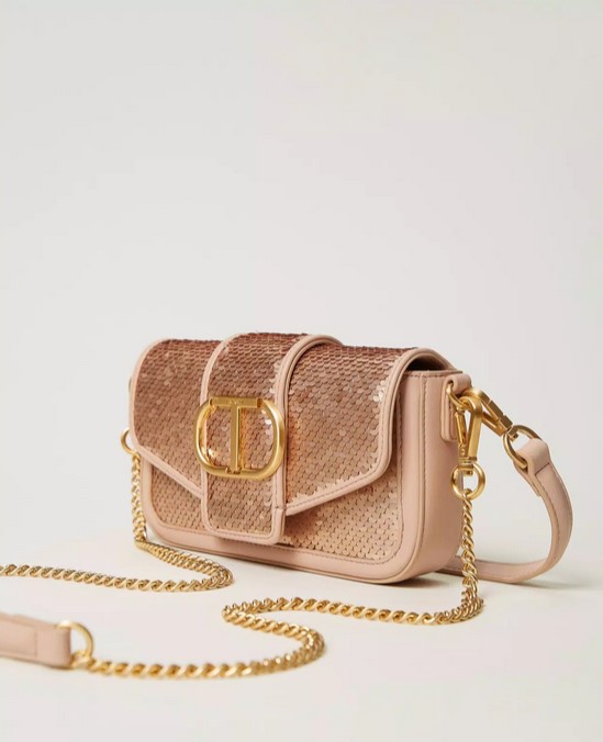 Sac Ă bandouliĂšre « Amie » top handle en tissu de sequins, avec dĂ©tails effet cuir de veau lisse assorti, logo Oval T en mĂ©tal, fermeture Ă rabat et aimant, anse pour un portĂ© main ou Ă©paule et bandouliĂšre en chaĂźne dotĂ©e dâune Ă©paulette effet cuir, toutes les deux amovibles, et doublure. Parfait pour une fĂȘte ou une cĂ©rĂ©monie.