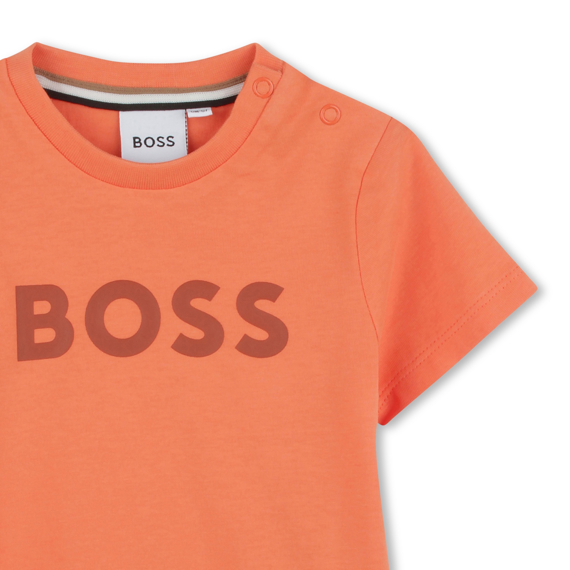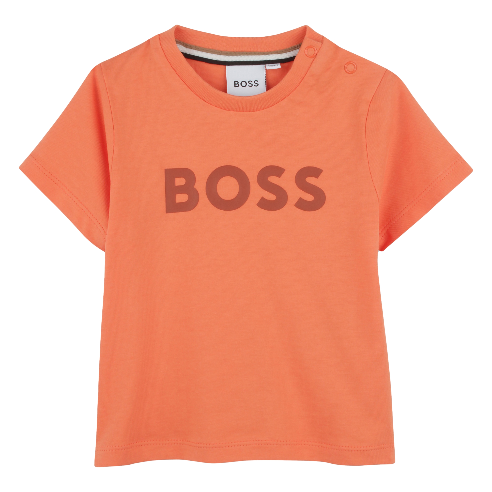 Ce T-shirt BOSS à manches courtes peut s’associer avec un short pour un look estival. Il est équipé d’une fermeture à pressions sur l’épaule et un logo est imprimé sur le devant.